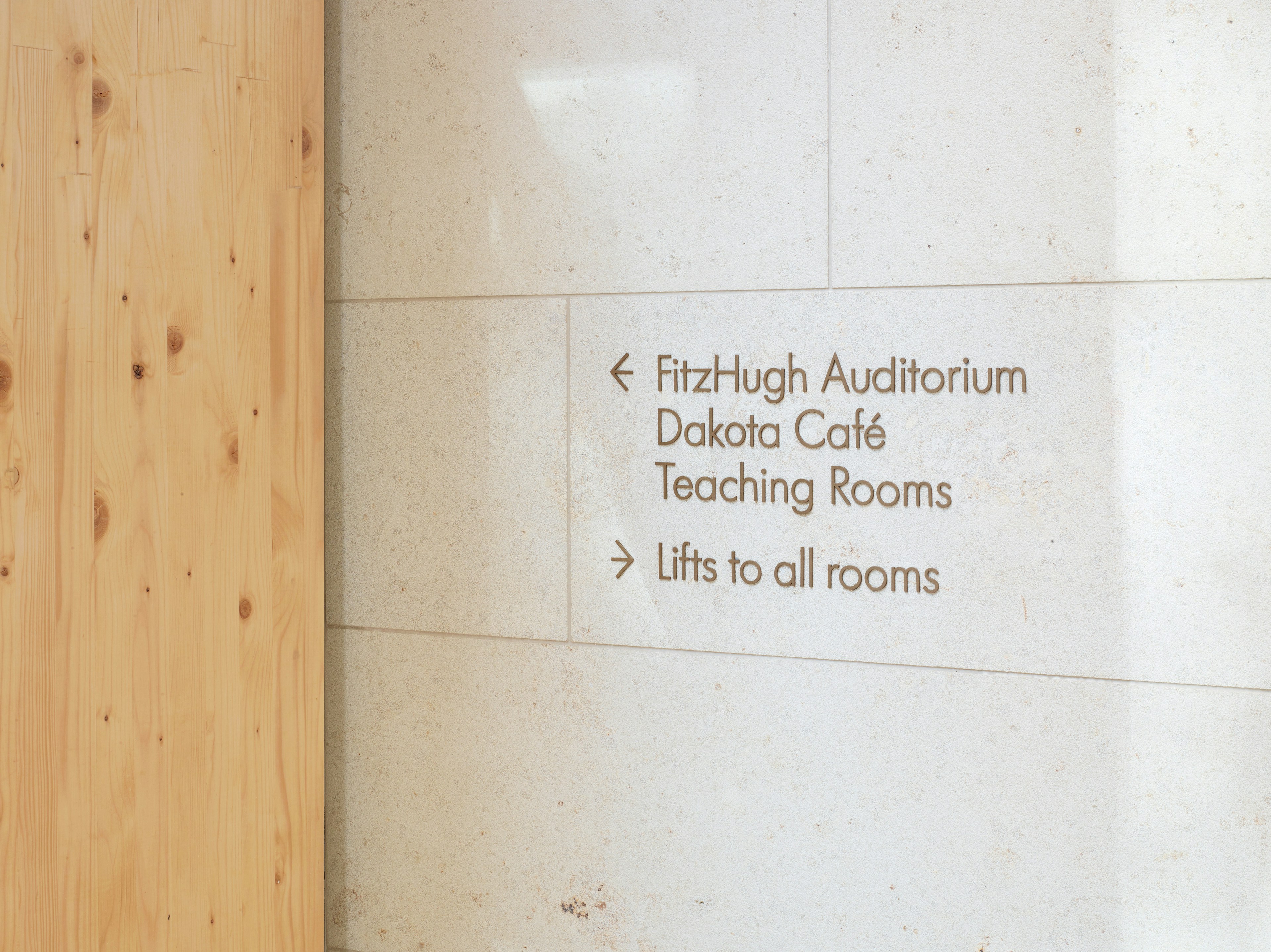 DPM were responsible for external and internal signage and way-finding, building dedications and donor recognition. Working within the architect’s established architectural palette the scheme uses traditional techniques combined with contemporary materials. Each signage archetype is sympathetically integrated into the space.
