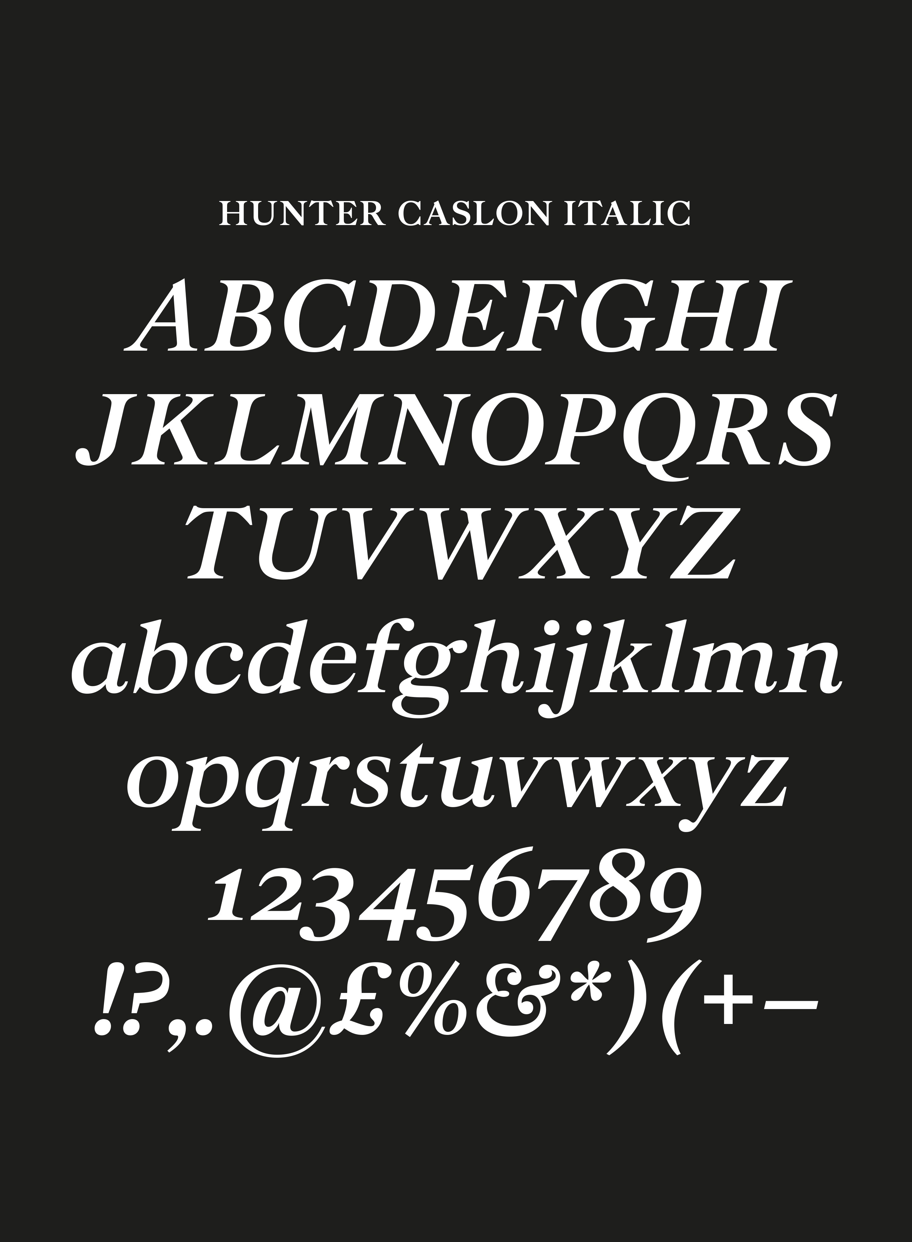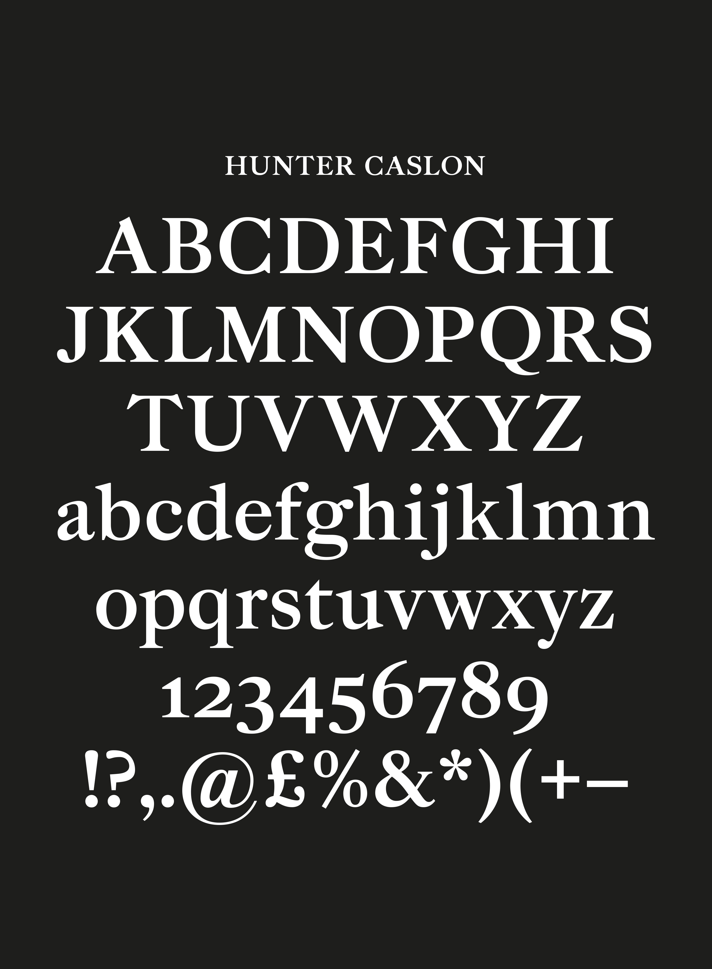A bespoke typeface, created with typographer Dave Farey, ‘Hunter Caslon’ was informed by original Caslon specimens held at St Bride’s Type Library, London. Typefounder William Caslon was a contemporary of John Hunter’s and Hunter used his typefaces in several publications.
