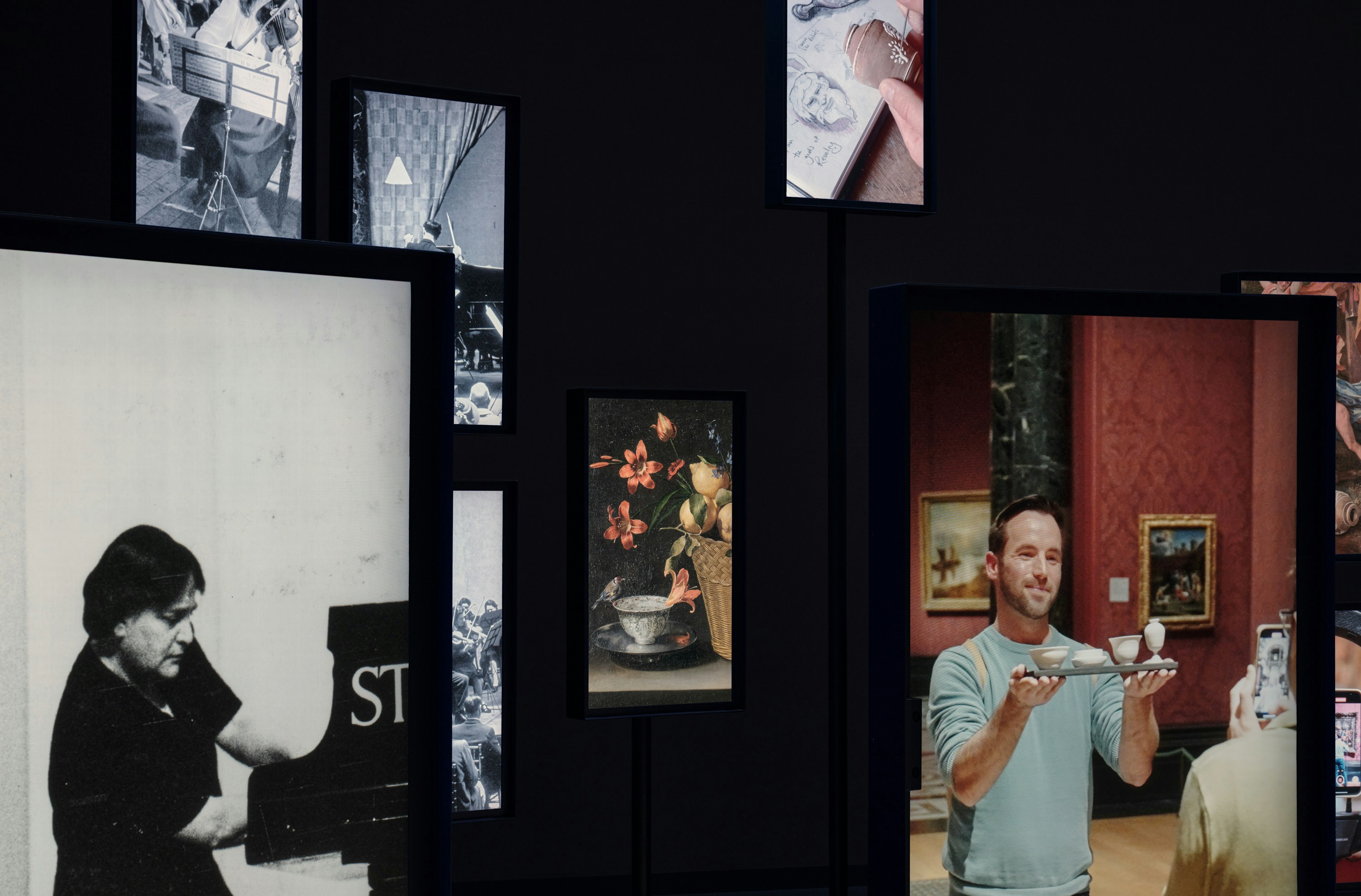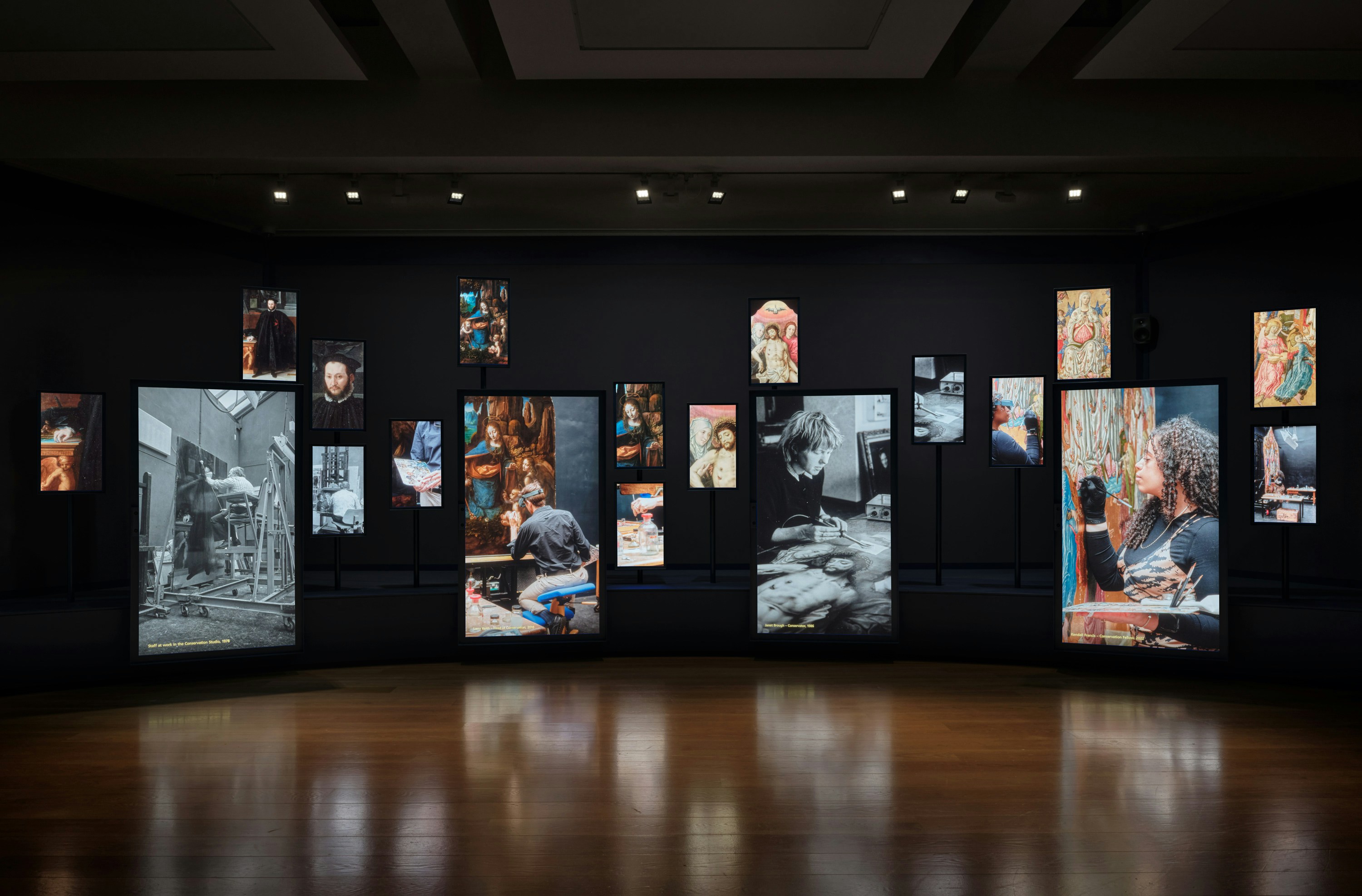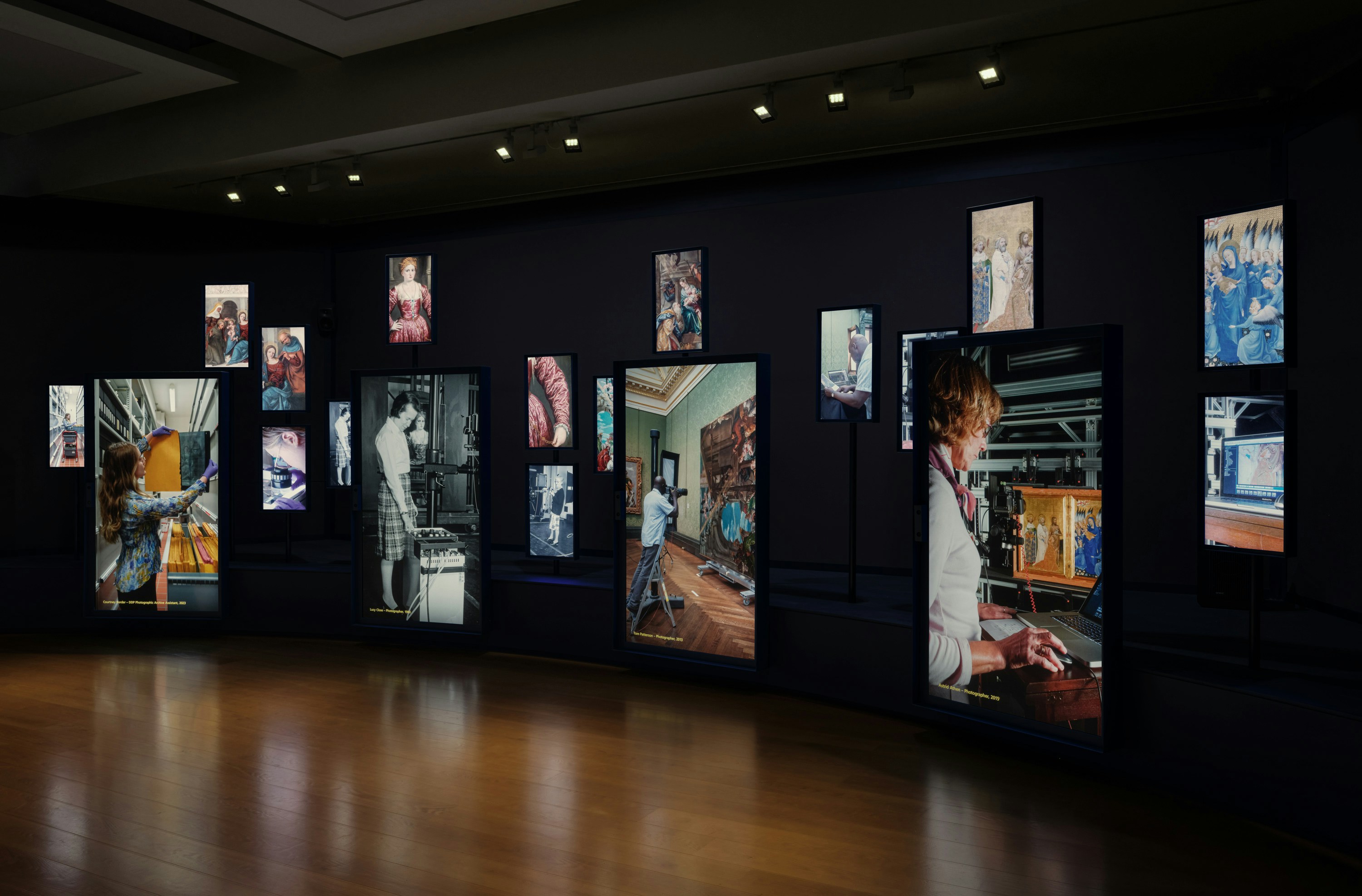 As installation designers, DPM translated the interactive concept into a spatial experience. A composition of large and small digital screens, set within bespoke housings, capture visitors silhouettes alongside images of the Gallery’s conservators, curators, framers, and other key figures from its two hundred year history.