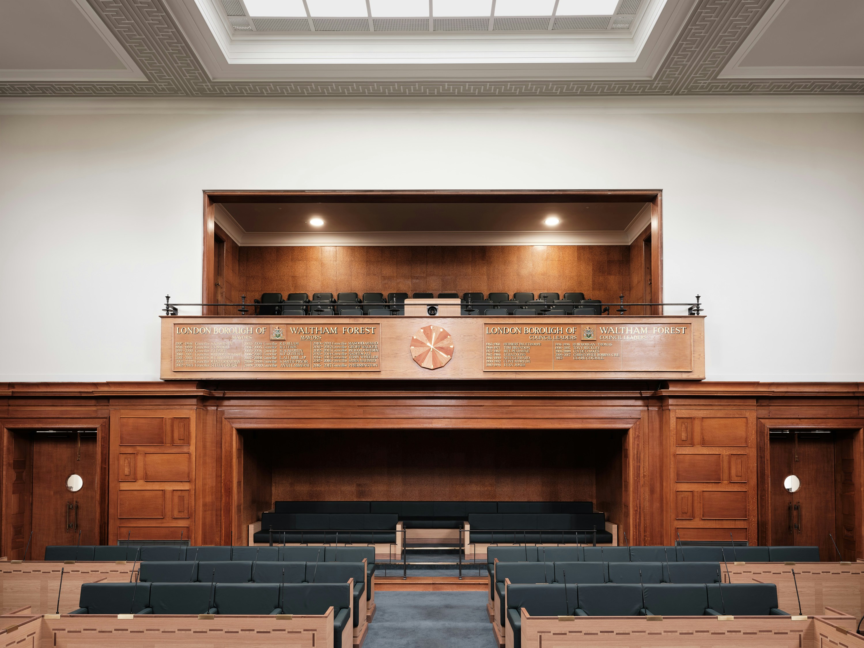 Hawkins Brown architects have restored and modernised Waltham Forest’s elegant 1940s Swedish classical style town hall. Workspaces have been modernised and the chamber and civic rooms transformed to house both community celebrations and council business.